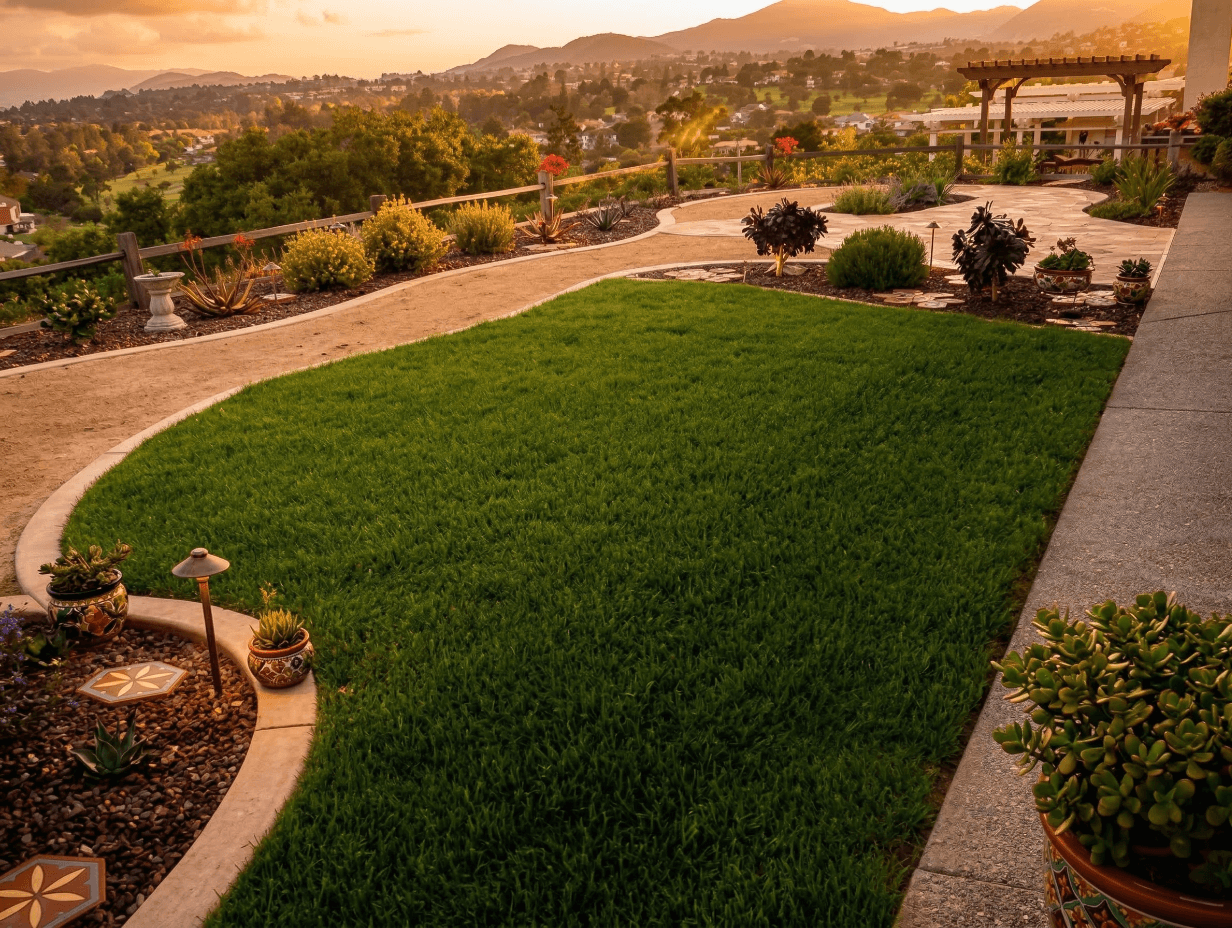 If you're spending time every week edging along garden beds, fence lines, and planting borders with a trimmer or hand shears, a concrete mow strip eliminates that work entirely — and does it without any ongoing cost. The installed strip creates a hard edge between lawn and bed that a mower can ride along directly, removing the need for a separate edging pass and keeping grass from creeping into planting areas over time. AJ Criss installs mow strips as part of new landscape construction and as standalone improvements throughout North County San Diego.